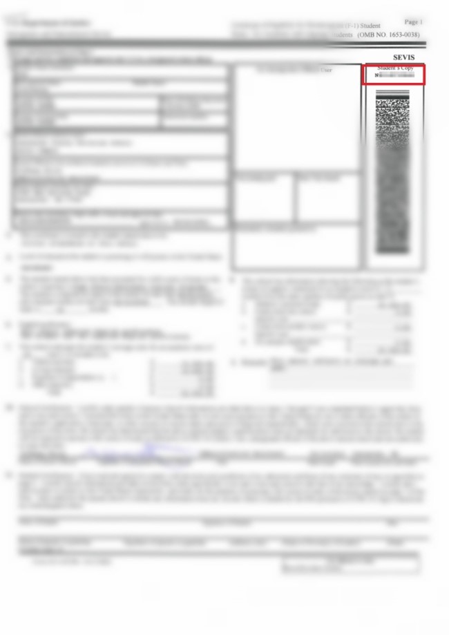 이것은 I-20 오른쪽 맨 위의 바코드 같은 부분 위의 번호를 말하는 것이다.