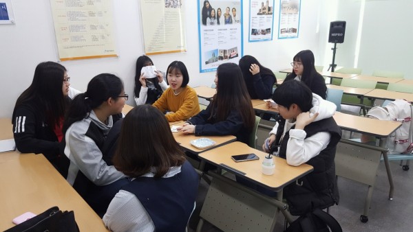출국전 프리미엄 사전적응교육(리얼스피킹 강의중 학생토론사진)